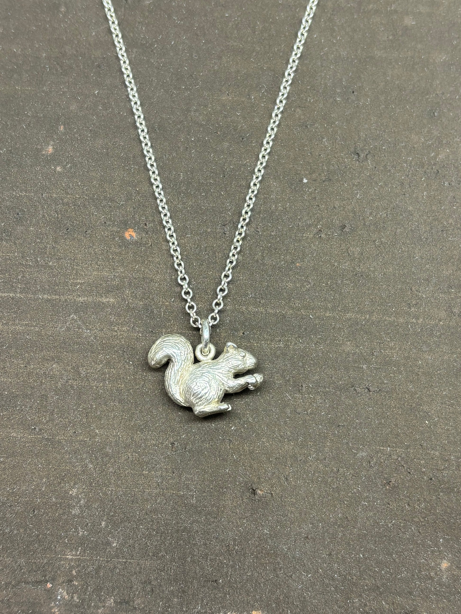 Beautiful handmade squirrel pendant in sterling silver.