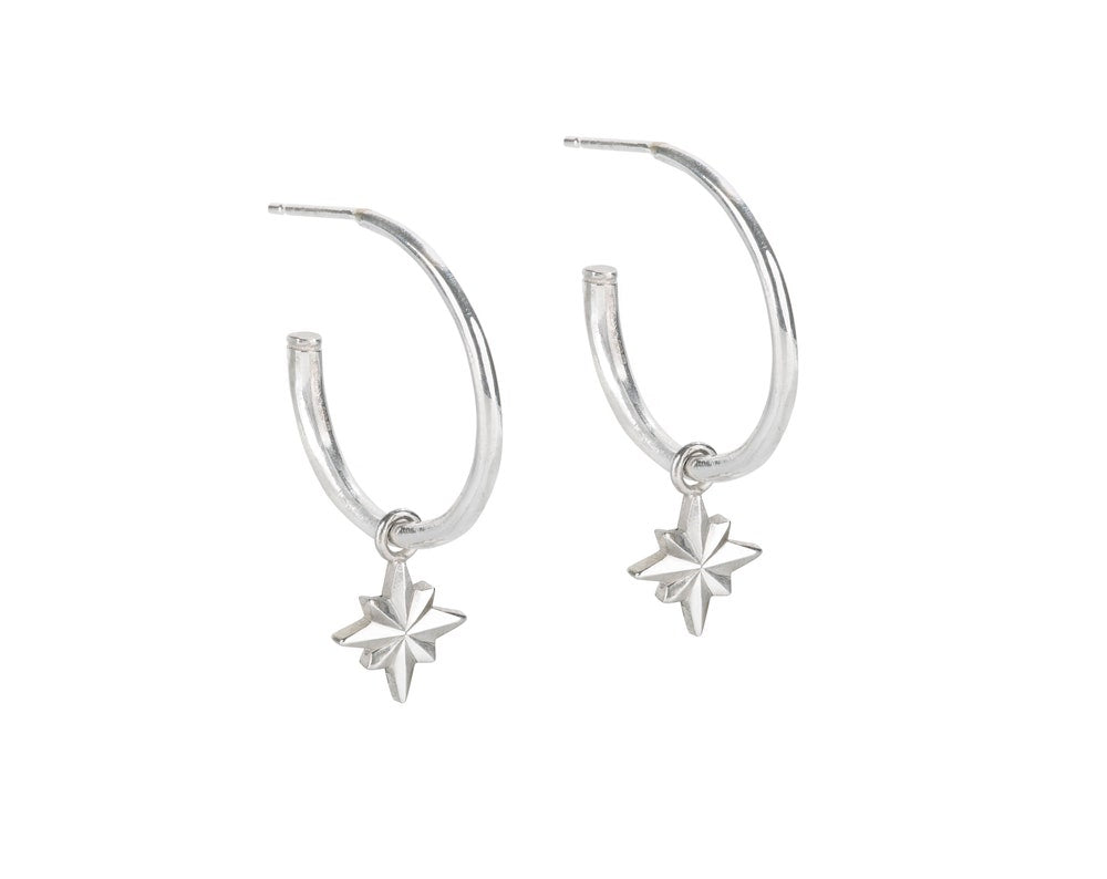 Beautiful handmade hoop earrings in sterling silver with a North Star charm giving a clean and contemporary design.